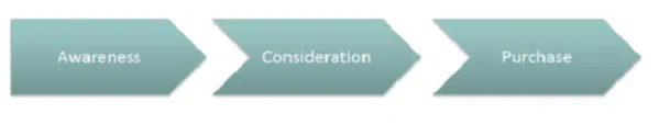 There are three common sales funnel stages that apply to many B2B customer journeys, and to the SaaS buyer as well. First, there is the awareness stage, where consumers realize they have a problem that needs solving. From there, they move into the consideration stage, where they start researching and comparing solution options. Finally, they enter the purchase stage, where they invest in your product.
