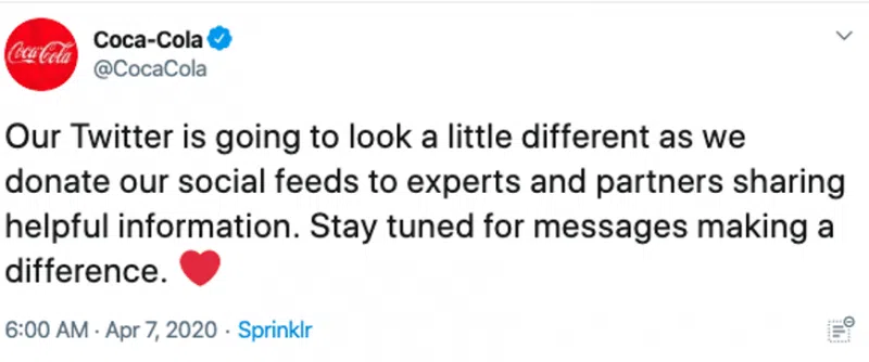We don’t need to tell you not to do this. Instead, acknowledge your buyer’s feelings and give them hope. Offer the tools they need to get through this difficult time, whether it be helpful content, coaching, etc.  While Coca Cola may be a consumer-facing brand, B2B marketers can learn from their example. Instead of bombarding consumers with promotions, they overhauled their social feeds to share resources and messages of hope.