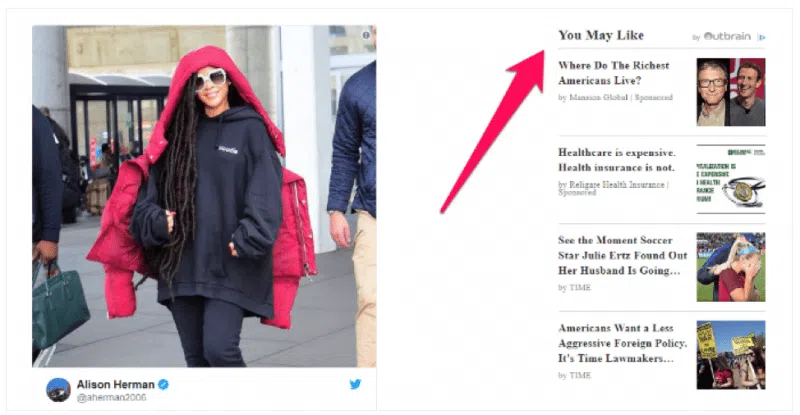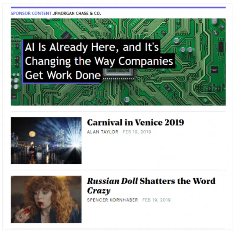 - The ad has a visual format that is similar to the publication’s own content, which gives it a stronger sense of authenticity (and thus, better click-through rates).