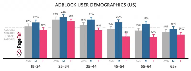 That’s when they actually see the ads – an increasing number simply block them. Ad blocking users tend to be largely younger, especially in that lucrative 25-34 age range.