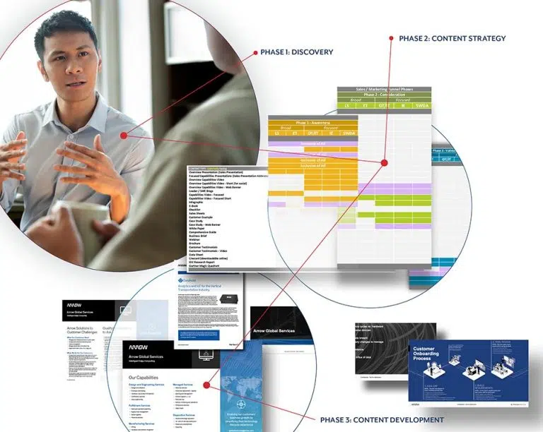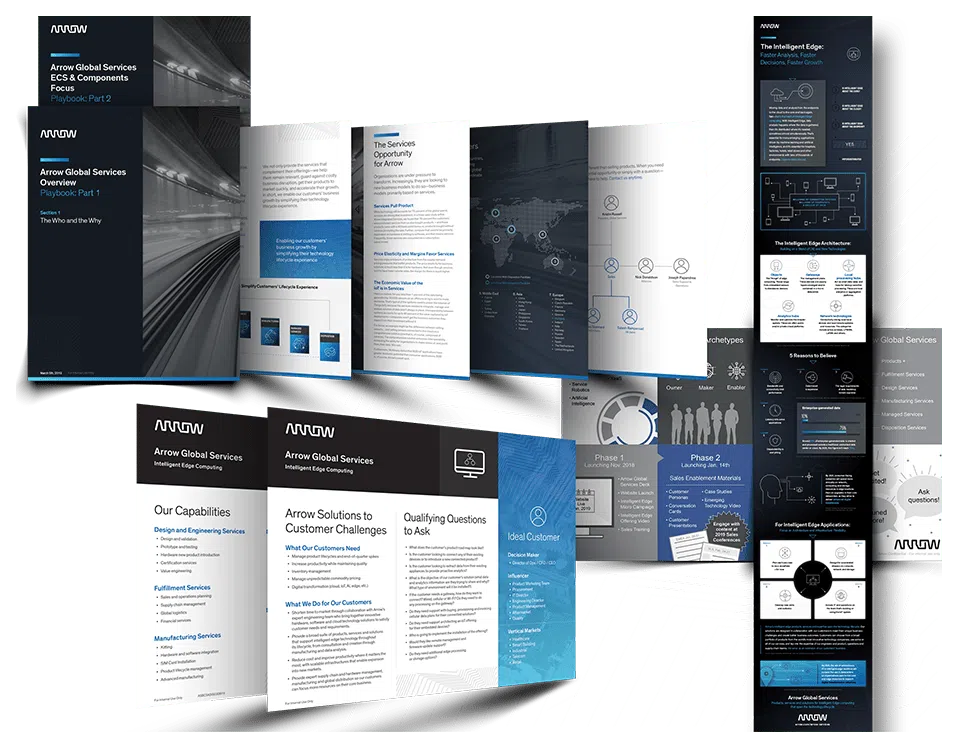After consolidating two business units with disparate sales approaches, Arrow needed help developing strategic marketing to support the rollout of new lifecycle services solutions to customers, and reposition as the market leader. Arrow engaged Elevation Marketing to create a comprehensive library of sales enablement materials within a tight 60-day timeline.